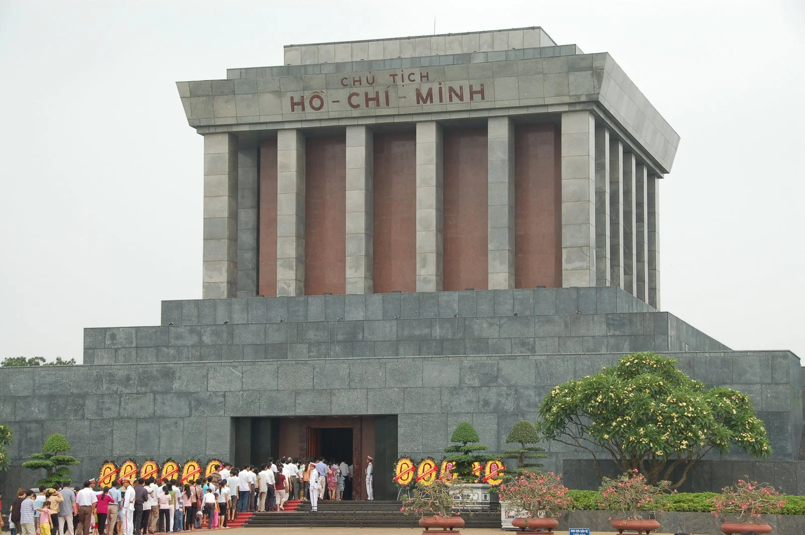 We left this morning after a good breakfast and went with our guide, Hung Cha, by van to the Mausoleum of Ho Chi Minh. Incredibly, there was a line over a mile long waiting to get in. We got a kitchen pass as a group with a guide and only had to stand in line for a couple hundred yards. Cameras weren't allowed, but the embalming techniques make Uncle Ho look like he is asleep, although he could work on his tan some if he wanted to pick up any girls.
